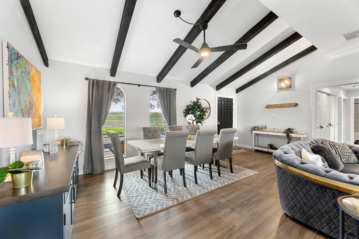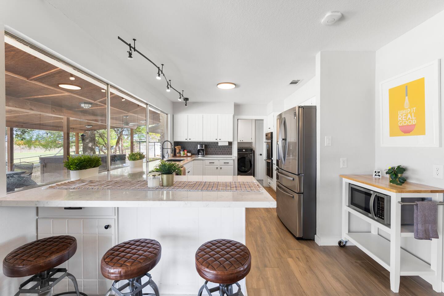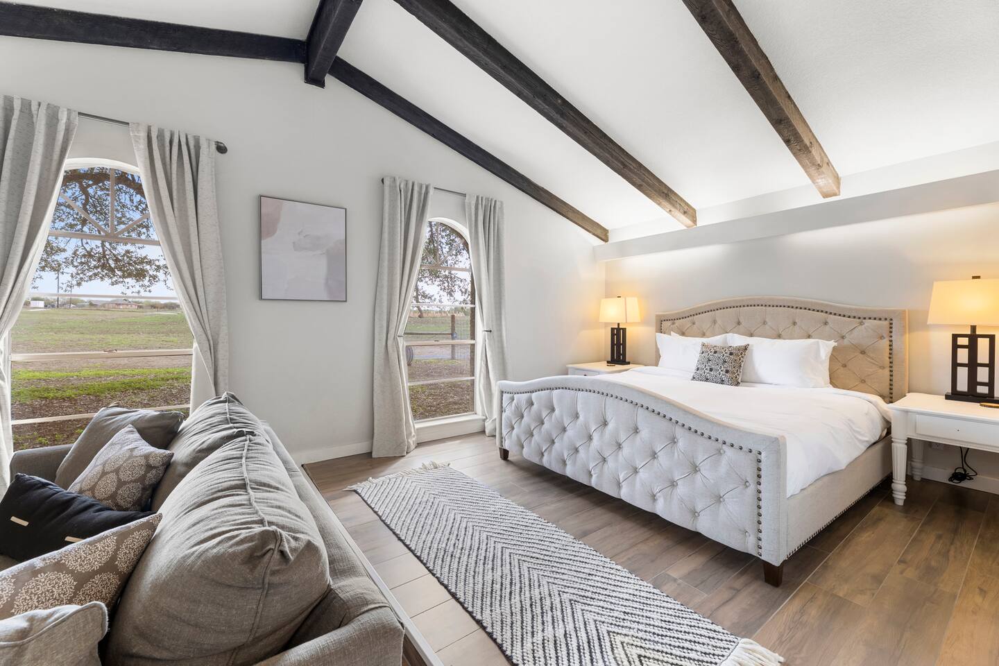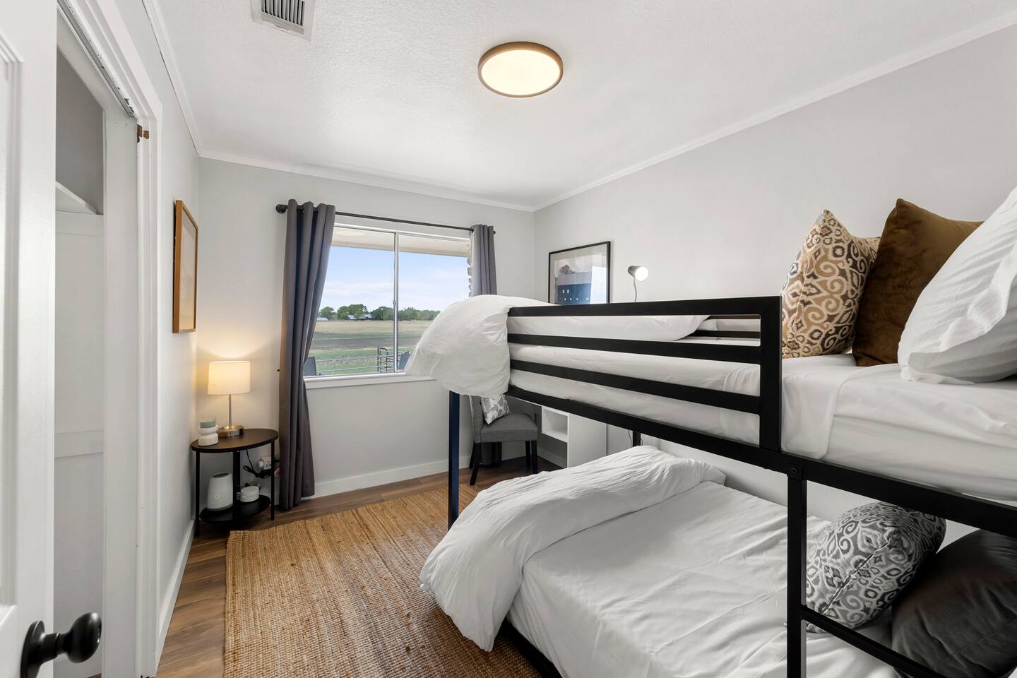 Escape to your private farmhouse retreat on 15 peaceful acres in Texas Hill Country. This spacious, family-friendly home blends rustic charm with modern comfort — complete with Starlink high-speed internet (240 Mbps), a hot tub, a full game room, and plenty of space to relax indoors and out. Farm Animals & Outdoor Fun Meet our friendly goats, alpacas, and mini cows — guest favorites for feeding and photos. Wander the private farm trails, enjoy sunset views, grill dinner on the covered deck, or end the night around the fire pit under the stars. Inside the Farmhouse Step into a warm and welcoming home with vaulted ceilings, comfortable furnishings, and a modern kitchen featuring a GE induction stove. The indoor wood-burning fireplace creates the perfect atmosphere for cozy nights. A dedicated workspace and fast Starlink WiFi make it easy for remote workers or large groups to stay connected. Game Room & Entertainment Your group will love the fully equipped game room with: • Pool table • Shuffleboard • Poker table • TV & hangout space Sleeping Arrangements • Master Suite: King bed + ensuite bathroom • Bedroom 2: Queen bed (sleeps 2) • Bedroom 3: Bunk bed (sleeps 4) • Game Room: Full sofa bed (sleeps 2) Outdoor Living • Large covered deck with hot tub, dining table & BBQ grill • Fire pit (bring your own firewood) • Scenic 15-acre property to explore • Parking for up to 6 cars Location A peaceful country setting just minutes from the best of Central Texas: • 11 mins to San Marcos (restaurants, shopping, outlets) • 18 mins to Gruene Hall & Guadalupe River tubing • 20 mins to Schlitterbahn Waterpark Multiple Dwellings on the Property The 15-acre farm includes both the farmhouse and a separate geodesic dome. These can be booked together or separately. You may see other guests on the property, but your home and outdoor areas are completely private. Please remember you’re staying on a working farm. You may see our friendly carpenter working in the barn during the day, and our caretaker visits daily to feed and check on the animals. They respect your privacy and are available if you need anything. Your farmhouse and outdoor areas are fully private. We care about transparency: This is a functioning farm with animals and daily activity Exterior security cameras monitor driveway and barn areas only The fire pit requires BYO firewood The farm store at the top of the property opens occasionally for events Ongoing Improvements We continue to make enhancements around the property (like our stocked fishing/swimming pond). All work is kept away from guest areas and does not affect your stay. Your Farm Stay Awaits Relax, reconnect with nature, and make lasting memories at this unique Texas Hill Country getaway.
